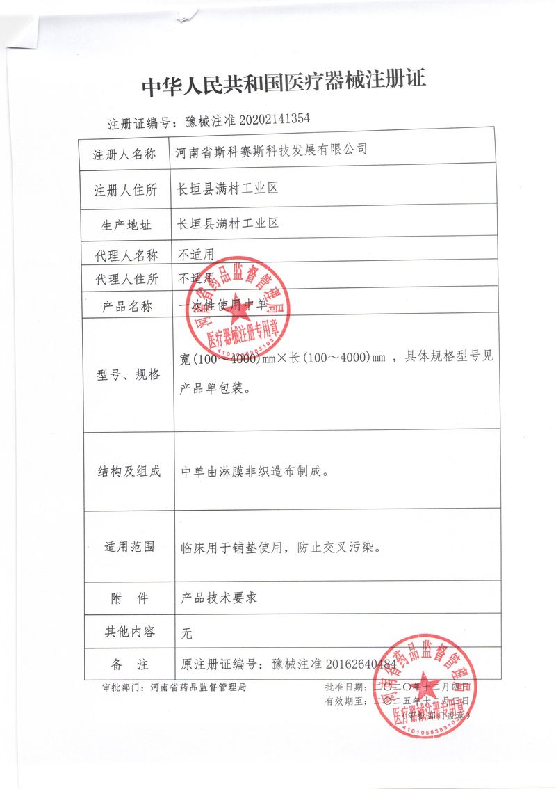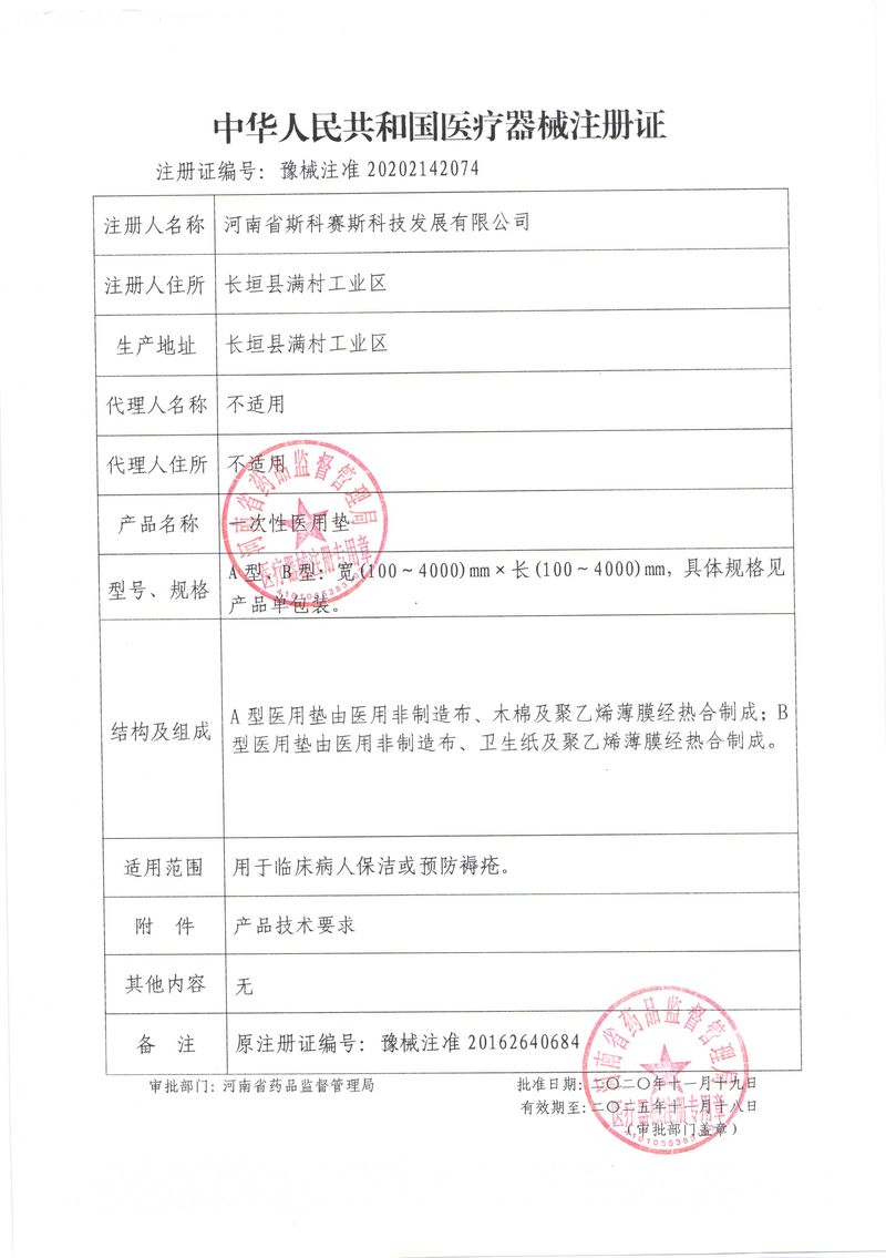 河南省斯科賽斯科技發(fā)展有限公司創(chuàng)建于 2011 年,位于“中國醫(yī)療耗材之都”- 河南省長垣縣,西臨 308 省道,南靠新菏鐵路,北依長濟高速,交通便捷,經(jīng)濟發(fā)達,環(huán)境優(yōu)美。斯科賽斯積極進入醫(yī)療健康和服務(wù)領(lǐng)域,秉承為用戶創(chuàng)造價值的理念,專注于醫(yī)用耗材解決方案的研發(fā)和運營,并為用戶提供完善的產(chǎn)品解決方案;  斯科賽斯主要生產(chǎn)醫(yī)用麻醉系列、醫(yī)用高分子系列、醫(yī)用敷料包系列、醫(yī)用無紡布系列、醫(yī)用防護系列、醫(yī)用脫脂棉系列、生物材料制品類等七大類、100 多個品種、400 多個規(guī)格的產(chǎn)品。公司占地面積約 30000 平方米,建筑面積20000 平方米,擁有 10 萬級的凈化車間總面積 10000 平方米。擁有國際先進水平的生產(chǎn)設(shè)備和檢測儀器,技術(shù)裝備精良,檢測手段完善,為醫(yī)療行業(yè)的不斷發(fā)展進步提供保障。公司順利通過 ISO9001、ISO13485 質(zhì)量管理體系認(rèn)證。  斯科賽斯堅持研發(fā)高科技新產(chǎn)品,力爭在醫(yī)療器械關(guān)鍵領(lǐng)域取得技術(shù)和研發(fā)的重大突破;立足國內(nèi)和國際兩個市場,逐步實現(xiàn)管理理念、經(jīng)營機制、人力資源、技術(shù)、產(chǎn)品、市場等全方位對接,提高企業(yè)的核心競爭力;過去的歲月里,斯科賽斯砥礪前行,誠信務(wù)實,銳意進取,不斷創(chuàng)新,用自己的睿智和辛勞,以富有責(zé)任感的使命,在探索中追求,在追求中超越,致力于成為值得信賴的醫(yī)療用品生產(chǎn)企業(yè)!在未來的日子里,斯科賽斯將一如既往豪情滿懷,信心百倍,攜手并肩,執(zhí)著追求,向更高的的目標(biāo)前進,鑄造新的輝煌!